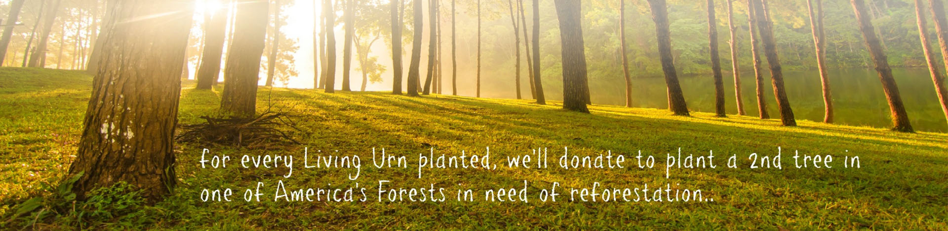 For every Living Urn planted, we'll donate to pant a 2nd tree in honor of your pet in one of America's Forests in need of reforestation.